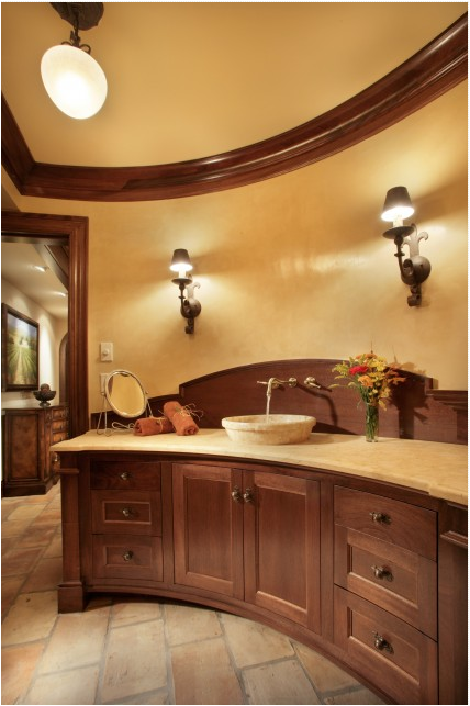 Whether it’s a kitchen, living room or bathroom Tuscan designs is a style that talks to me on so many levels. I love it's mixes with traditional Italian design elements, such as arches, iron railings, and Terra-cotta tiles. Tuscany calls to mind a deep connection to family and roots. I can just imagine taking a nice long hot bath in a Tuscan bathroom come to speak of it! “Who wouldn’t? Check out our complete collection of bathroom ideas and photos featuring the Tuscan Bathroom!!